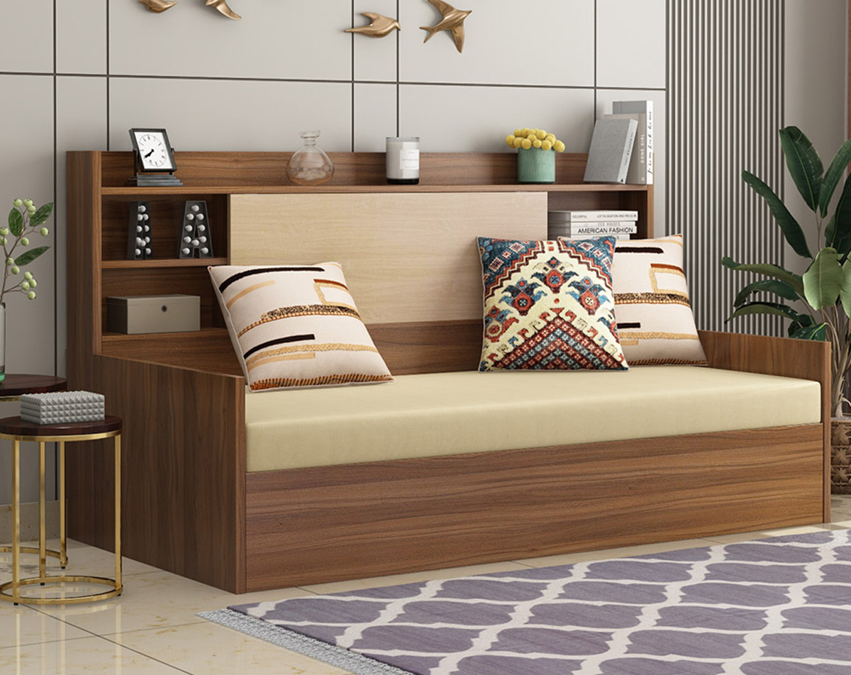 Sofa bed mattresses are quite thin and flexible, as they have to fold up inside the couch when not in use. The typical sofa bed uses a folding metal frame attached to the couch. The mattress stays on top of the frame. When you're done, you fold the end of the bed over, then lift and lower the frame inside the sofa.